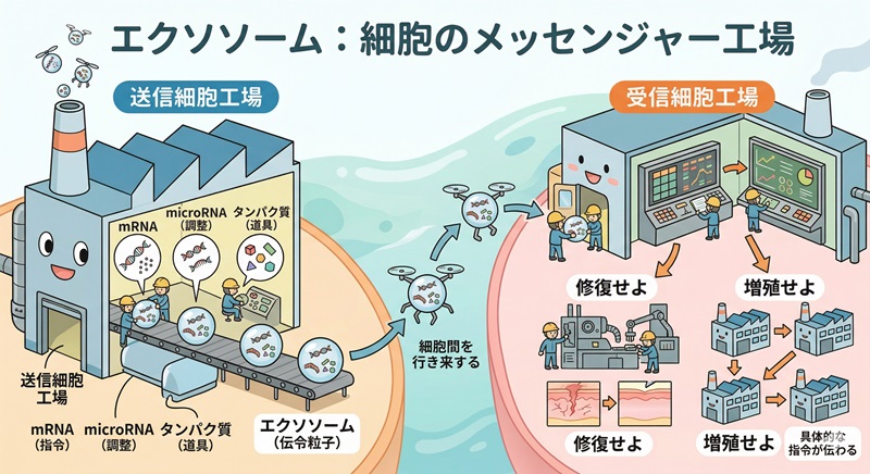 では、「細胞が本来の働きを取り戻す」ような根本的な変化を求めるなら、どうすればいいのでしょうか。ここで鍵となるのが、エクソソームというアプローチです。